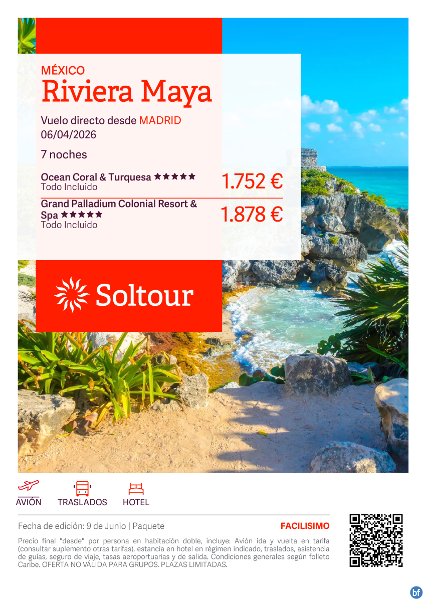 Riviera Maya (México) en Grand Palladium Colonial Resort & Spa desde 1.878€, salida 6 Abril 2026 desde Madrid