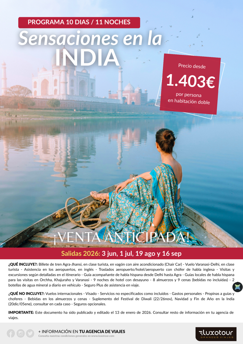 Sensaciones en la India (10 días / 11 noches), salidas 3 jun, 1 jul, 19 ago y 16 sep desde 1.403€